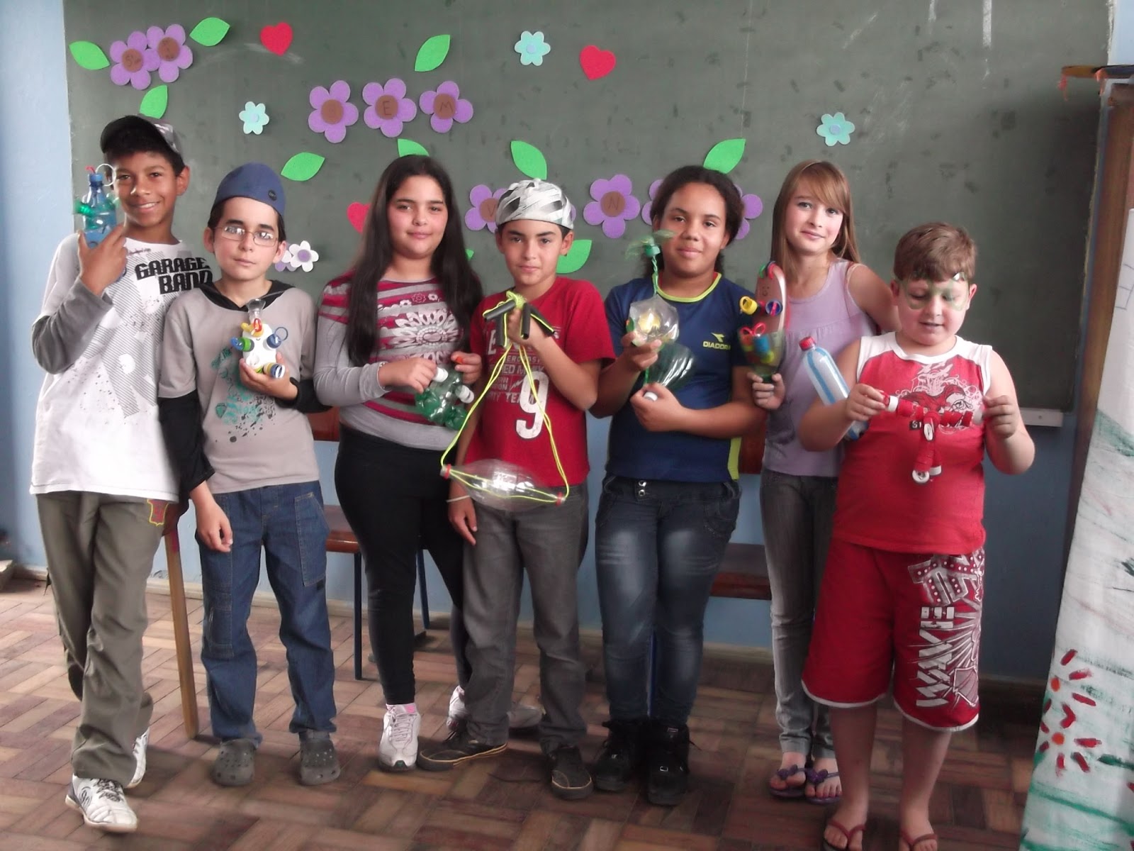 No mês de maio os alunos do 5º ano fizeram uma agenda semanal para presentear a mamãe, com tampinhas de garrafas pet e miçangas.
